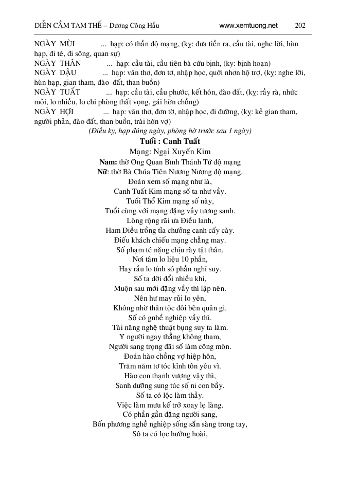 • Xem Ngày Tốt Xấu Vạn Sự: Cung cấp thông tin chính xác về ngày Hoàng đạo, Hắc đạo, giờ tốt xấu (theo các phương pháp cổ truyền như Tam Tông Miếu, Khổng Minh Lục Diệu...) để bạn lựa chọn được thời điểm lý tưởng cho mọi công việc quan trọng.