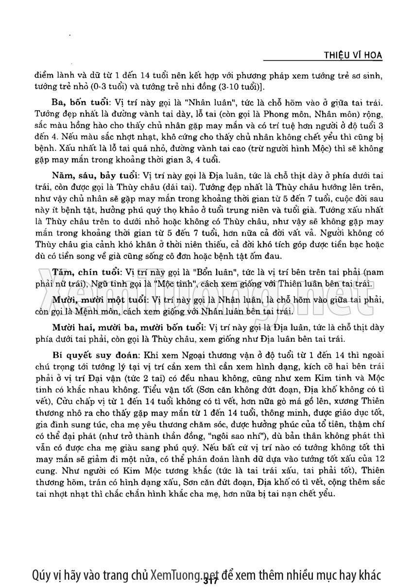 Sách "Tìm hiểu nhân tướng học theo kinh dịch" của tác giả Thiệu Vĩ Hoa cho chúng ta một cách nhìn toàn diễn về bản chất của thuật nhân tướng. Hầu hết chúng ta khi nói đến tướng thuật đều nghĩ đến khuôn mặt. Tuy nhiên như vậy có nghĩa là chỉ quan tâm đến phần hình dạng bên ngoài mà chưa chú trọng đến bản chất bên trong của thuật nhân tướng. Tướng thuật là nhìn tướng một người mà đoán được tuổi thọ, tài lộc, vận hạn... của họ, thậm chí của tổ tiên, cha mẹ, anh chị em trong gia đình người đó.