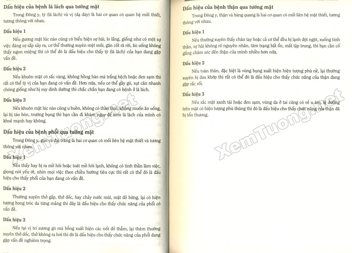 Xem Tướng Biết Người Lời nói dầu Ứng dụng kỳ diệu của nhân tướng học Nhân tướng học trong tư liệu lịch sử Cách tuyển chọn và đánh giá nhân tài trong thời hiện tại Các danh nhân nổi tiếng trong lịch sử Lợi ích của nhân tướng học đối với nguồn quản lý nhân lực + Bài học đầu tiên khi xem tướng Tướng do tâm sinh - bạn không thể không tin Hãy xem ngũ quan bộc lộ nội tâm của bạn như thế nào Tinh - khí - thần - những yếu tố không thể bỏ qua trong nhân tướng học Thế nào là tướng tốt Các khái niệm cơ bản trong xem tướng mặt + Khuôn mặt chính là 1 vũ trụ thu nhỏ Trên mặt có càn khôn Trên khuôn mặt có sông có núi Cuộc đời qua nét mặt Xem mặt đoán lưu niên cát hung Dấu hiệu bệnh tật biểu hiện qua tướng mặt + Mỗi bộ phận trên khuôn mặt điều ẩn chứa nhiều bí mật Mắt - bộ phận quan trong nhất trong ngũ quan Lông mày - bộ phận không thể bỏ qua Mũi - Không kẻ ăn mày nào có mũi đẹp Miệng không chỉ để ăn mà còn để nói Xem tai phán đoán về phúc khí Người có xương ngò má nhô ra thường có tính tranh đấu cao Ấn đường là vận mệnh cả dời Trán - Không chỉ tượng trương cho tuổi thọ Răng, lưỡi chứa đựng huyền cơ Nhân trung đóng vai trò rất quan trọng Nếp nhăn pháp lệnh không chỉ tượng trưng cho tuổi già Tìm hiểu về chiếc cằm Làm thế nào để quan sát khí sắc + Một phút nhìn thấu tâm can 1 Những cô gái sùng thượng vật chất Lấy được chồng giàu chưa hẳn phải là người xinh đẹp Cô gái tự luyến chỉ biết đến mình Cô ấy là ngọn lửa giữa đêm đông Phát hiện mẫu hình phụ nữ tai quái Nhận biết những cô gái thích đóng kịch Thế nào là cô gái gặp ai cũng yêu Tính cách ương bướng sẽ thể hiện trên nét mặt Bộ dạng của kẻ lật lọng Mẫu hình phụ nữ tài cán xốc vác Sự tài hoa, sắc sảo thể hiện qua nét mặt Khuôn mặt của người quen phục tùng nhẫn nhịn Những cô gái luôn cho mình là nhất Mẫu phụ nữ xấu xa từ trong trứng Mẫu hình phụ nữ dễ kích động + Một phút nhìn thấu tâm can 2 Vận mệnh đánh dấu trên khuôn mặt của những đứa con cưng Có những người làm việc gì cũng xui xẻo Tướng mặt của những nhân vật lãnh đạo Tướng mặt của người phụ nữ mạnh mẽ Tướng mạo của người cao ngạo Đừng bao giờ động chạm đến những người như thế này Nhận diện kẻ qua cầu rút ván Ai là người chú trọng đến chất lượng cuộc sống Nhút nhát không phải là lỗi của tôi Nhận mặt kẻ đào hoa Tướng mặt của người hào phóng hiếu khách + Một phút nhìn thấu tâm can 3 Tướng mặt của người càng thất bại càng kiên cường Nhận biết người hiền hòa thân thiện Người hiền lành đến mức bị người khác bắt nạt Những người không biết giữ bí mật Những người khéo xoay sở Nhận diện những người luôn sống cô độc Tướng mạo của những người sống cô độc Những người phụ nữ bất mãn với chồng Những người thích thể hiện mình Tướng mạo của những người vui giận bất thường, hay gặp vạ miệng Khuôn mặt của những người cứng rắn Mẫu người luôn trói mình trong trầm cảm Đi tìm một tình yêu cho riêng mình Tướng mặt của người lụy tình Tướng mặt của người kiêm tốn, hiền hòa Tướng mặt của người tự tin, lịch thiệp Tướng mặt của những người thực tế Tướng mạo của người giàu lòng tự trọng Tướng mặt của người rộng lượng, khéo léo Tướng mặt của người có chính kiến Tướng mặt của người cầu tiến Tướng mặt của người có xuất thân tốt Tướng mặt của người có quan hệ rộng Tướng mặt của người có thần kinh vững vàng Tướng mặt của người không tham danh vọng Tướng mặt của người thuở nhỏ có vận tốt Tướng mặt của người thành công trên cả sự nghiệp và tình cảm Tướng mặt của người giữ chữ tín Tướng mặt của người cần cù, chắc chắn Tướng mặt của người `tri túc thường lạc` Tướng mặt biết quản lý tiền bạc hợp lý Tướng mặt của người dịu dàng, khéo léo Tướng mặt của người biết tôn trọng người khác + Những kiểu tướng dự báo tai họa Tướng mặt của người kém duyên với con cái Tướng mặt của người thất bại trong sự nghiệp Tướng mặt của người ngạo mạn, kinh đời Tướng mặt của người vất vả, vô phúc Tướng mặt gây tai họa bất ngờ Tướng mặt thể hiện vợ chồng bất hòa Tướng mặt của người trăng hoa Tướng mặt của người tâm thuật bất chính Tướng mặt của người đanh đá chanh chua Tướng mặt của người yếu đuối, đoản mệnh Tướng mặt của người khẩu phật tâm xà Tướng mặt của người nhà nghèo, lao động vất vả Tướng mặt của người tàn bạo độc ác Tướng mặt của người gặp nhiều tai họa Tướng mặt của người phá sản, túng quẫn Tướng mặt của người bất hạnh trong hôn nhân Tướng mặt của người có gia đạo sa sút Tướng mặt của người cô độc Tướng mặt của người xốc nỗi, hiếu chiến Tướng mặt của ngườ