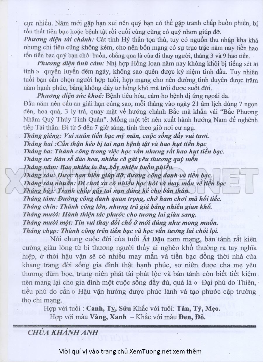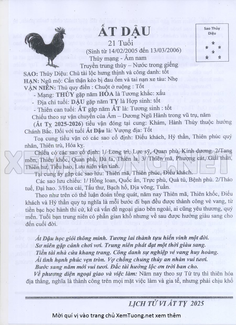 Tử Vi Năm Ất Tỵ 2025 mạng nam ẤT DẬU