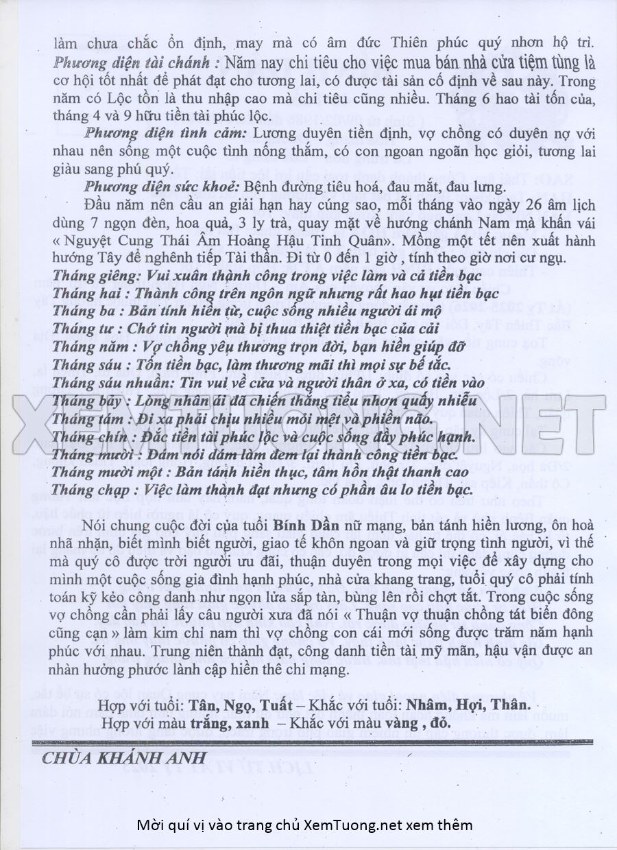 Tử Vi Năm Ất Tỵ 2025 mạng nữ BÍNH DẦN