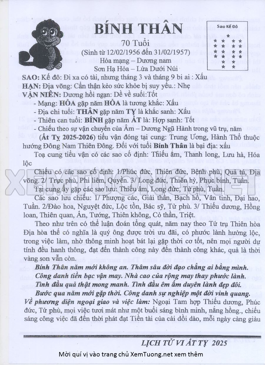 Tử Vi Năm Ất Tỵ 2025 mạng nam BÍNH THÂN