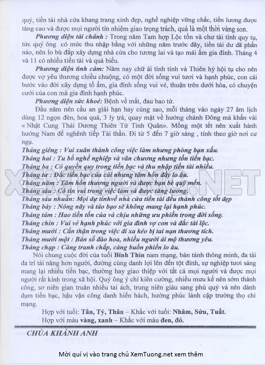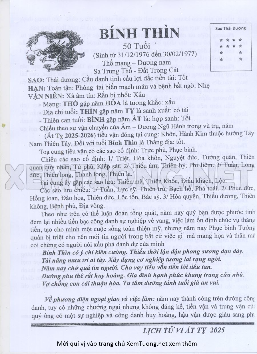 Tử Vi Năm Ất Tỵ 2025 mạng nam BÍNH THÌN