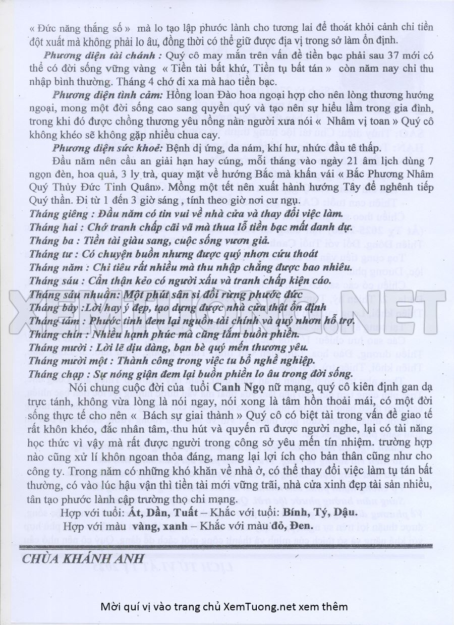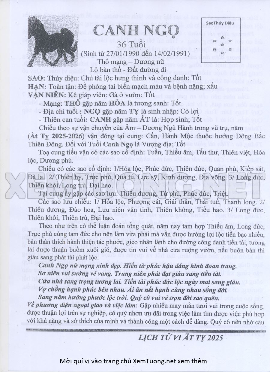 Tử Vi Năm Ất Tỵ 2025 mạng nữ CANH NGỌ