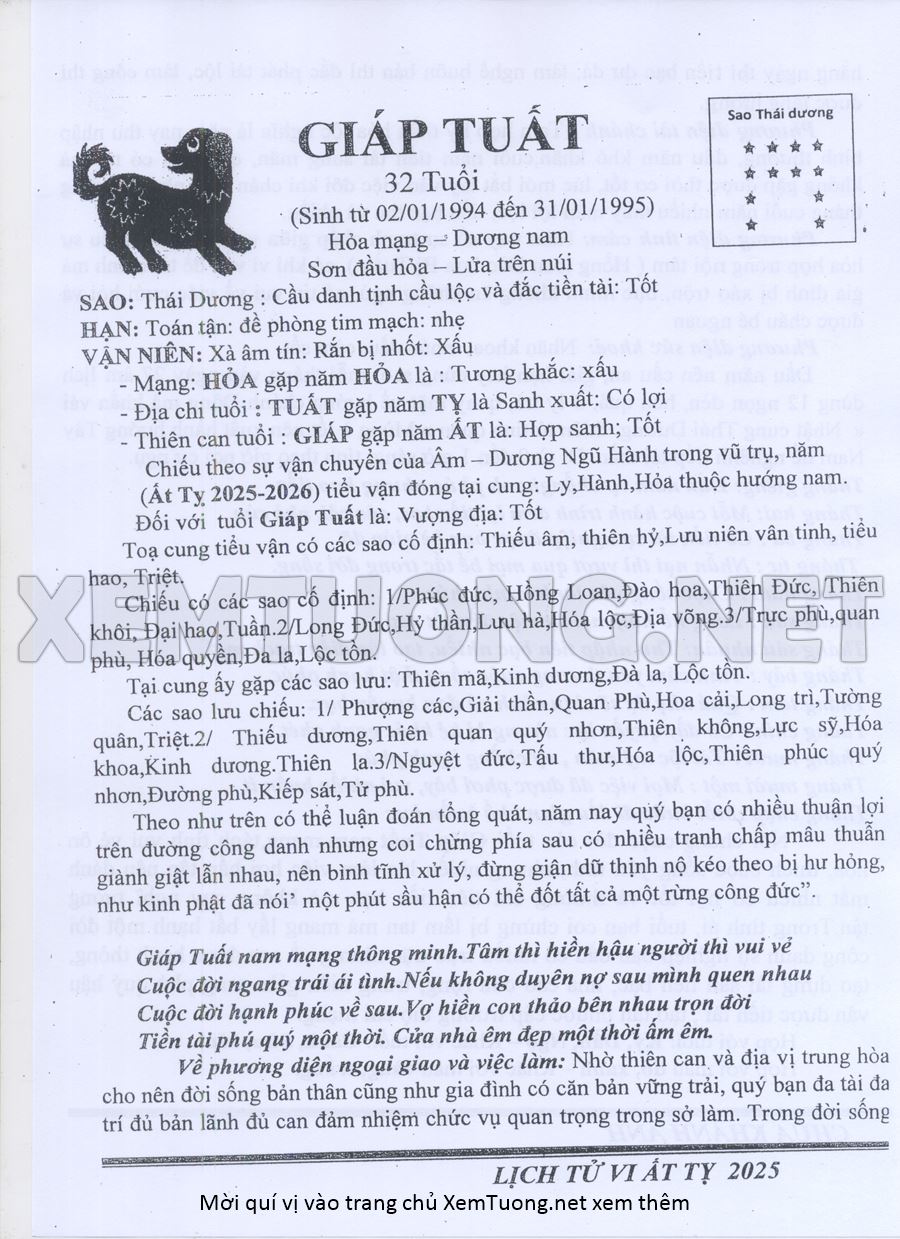 Tử Vi Năm Ất Tỵ 2025 mạng nam GIÁP TUẤT