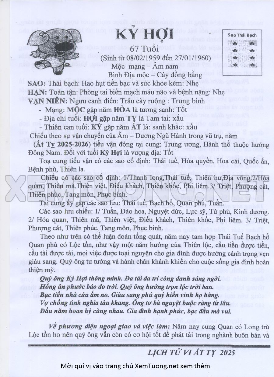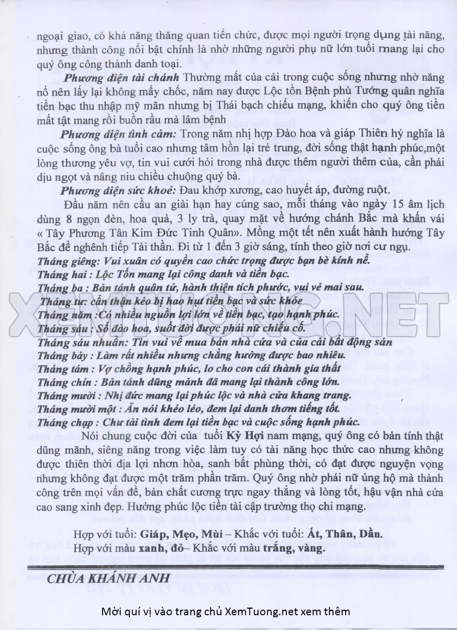 Tử Vi Năm Ất Tỵ 2025 mạng nam KỶ HỢI