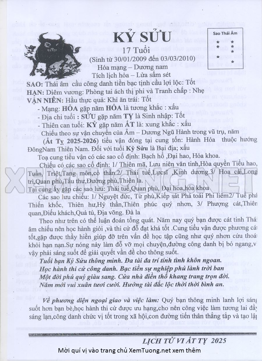 XEM SAO HẠN, TAM TAI, KIM LÂU, HOANG ỐC NĂM ẤT TỴ 2025
