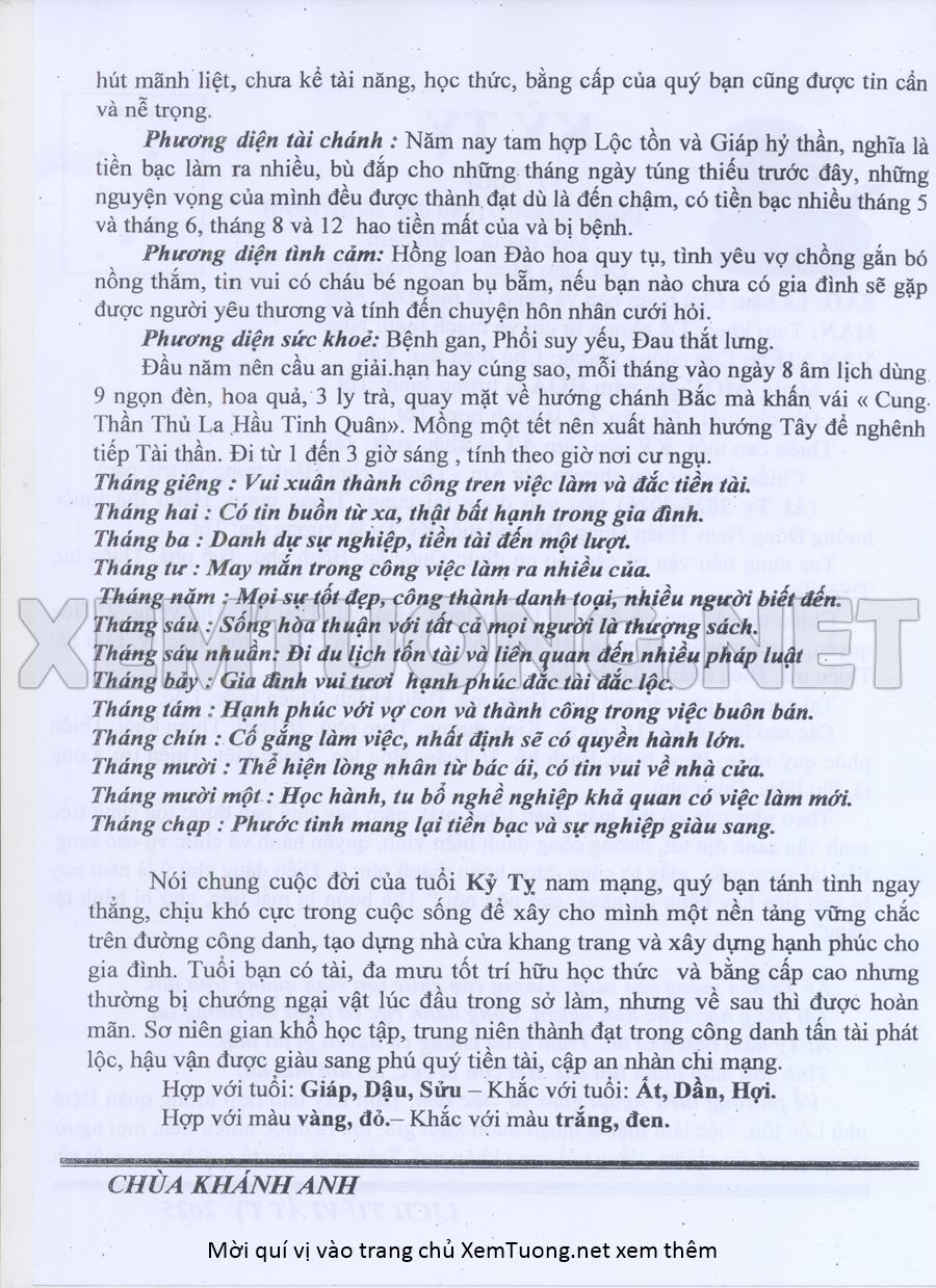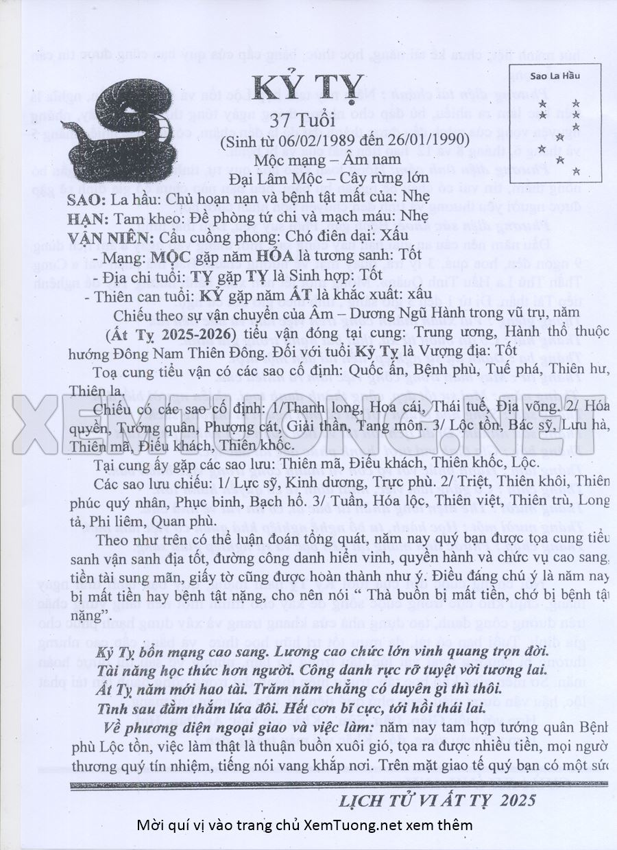 Tử Vi Năm Ất Tỵ 2025 mạng nam KỶ TỴ