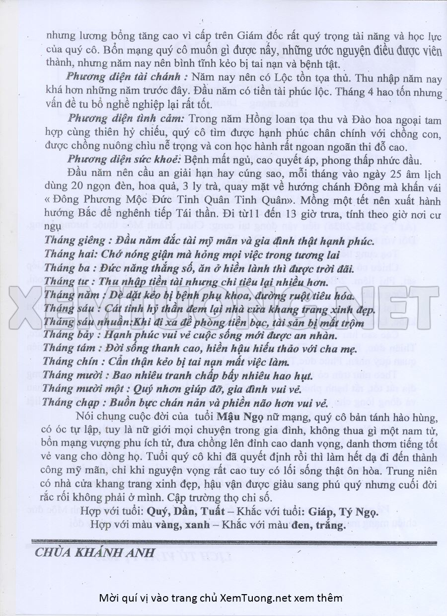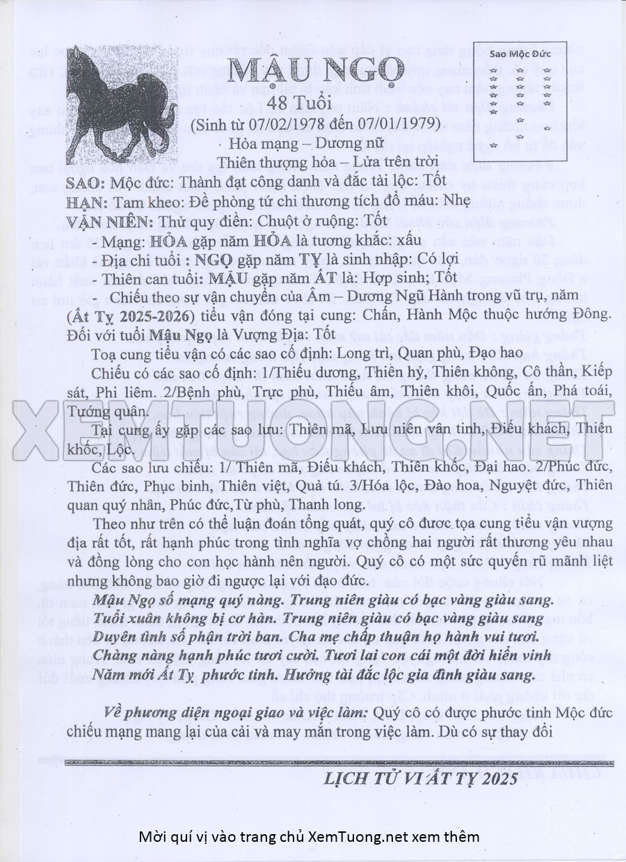 Tử Vi Năm Ất Tỵ 2025 mạng nữ MẬU NGỌ