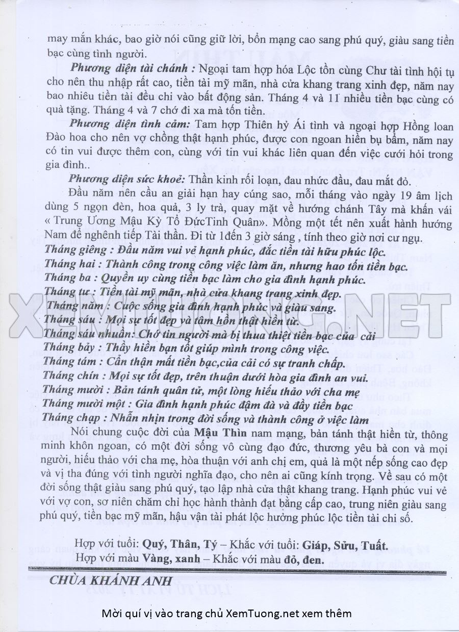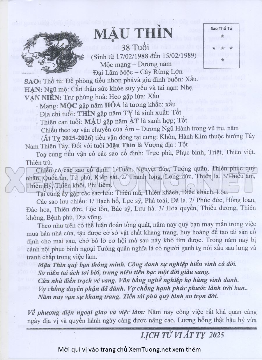 Tử Vi Năm Ất Tỵ 2025 mạng nam MẬU THÌN