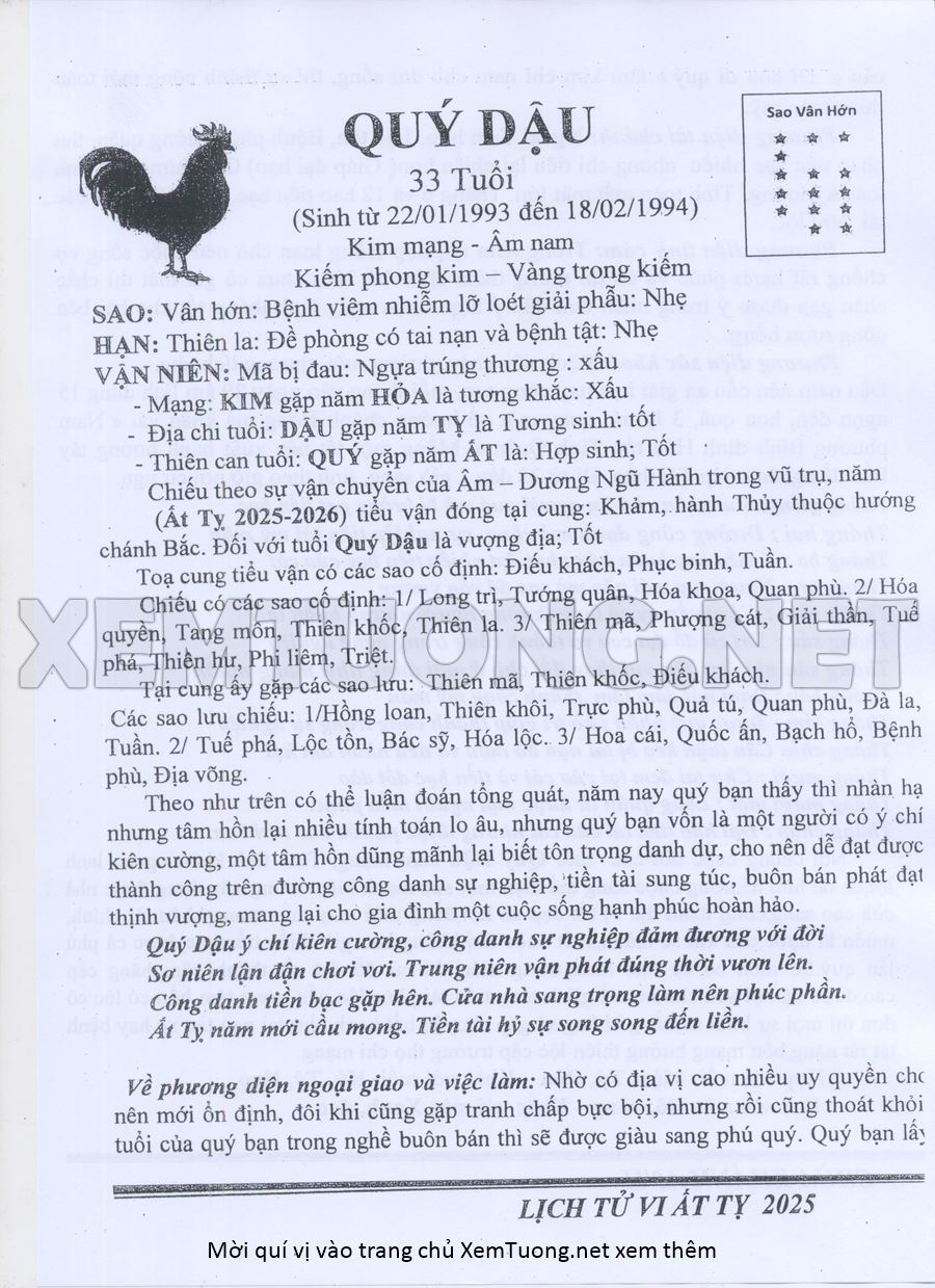 Tử Vi Năm Ất Tỵ 2025 mạng nam QUÝ DẬU