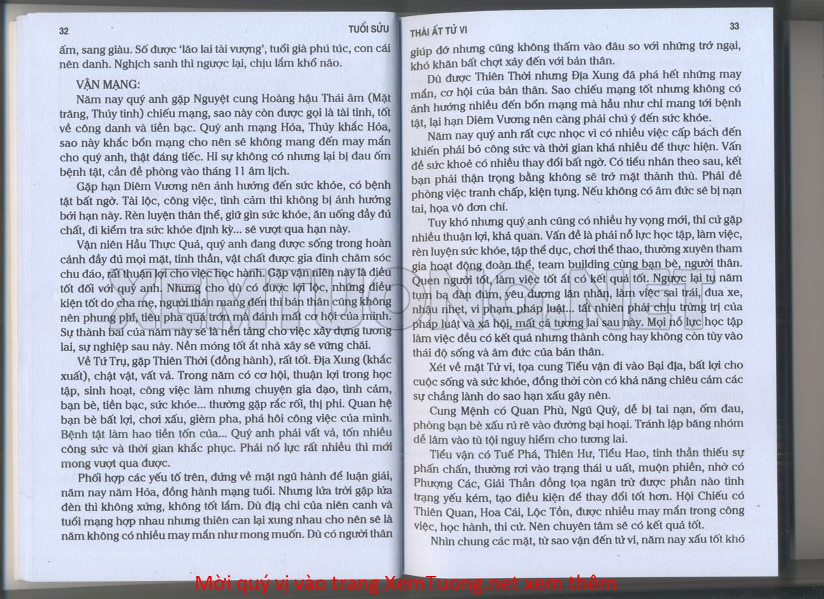 (Lưu ý: Thái Ất Tử Vi được chúng tôi scan từ sách, do đó mỗi tuổi sẽ có nhiều trang, quý vị xem xong hãy nhấn vào trang tiếp theo để xem hết phần tuổi muốn xem. Nếu quý vị xem bằng điện thoại thì hãy kéo qua lại để xem phần bị khuất.)
