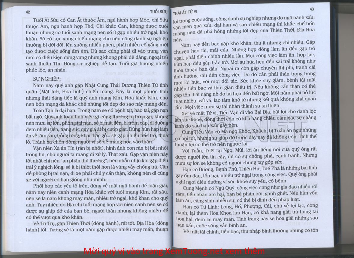 (Lưu ý: Thái Ất Tử Vi được chúng tôi scan từ sách, do đó mỗi tuổi sẽ có nhiều trang, quý vị xem xong hãy nhấn vào trang tiếp theo để xem hết phần tuổi muốn xem. Nếu quý vị xem bằng điện thoại thì hãy kéo qua lại để xem phần bị khuất.)