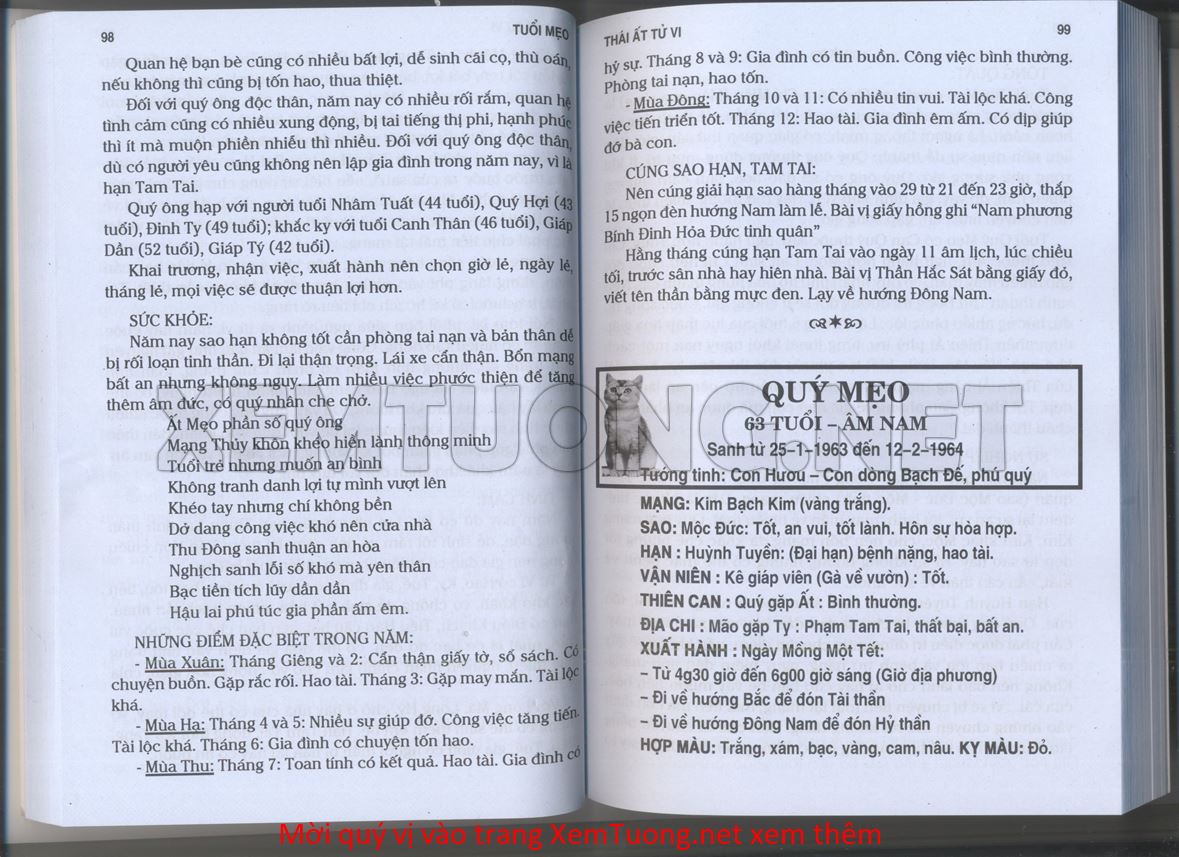 (Lưu ý: Thái Ất Tử Vi được chúng tôi scan từ sách, do đó mỗi tuổi sẽ có nhiều trang, quý vị xem xong hãy nhấn vào trang tiếp theo để xem hết phần tuổi muốn xem. Nếu quý vị xem bằng điện thoại thì hãy kéo qua lại để xem phần bị khuất.)