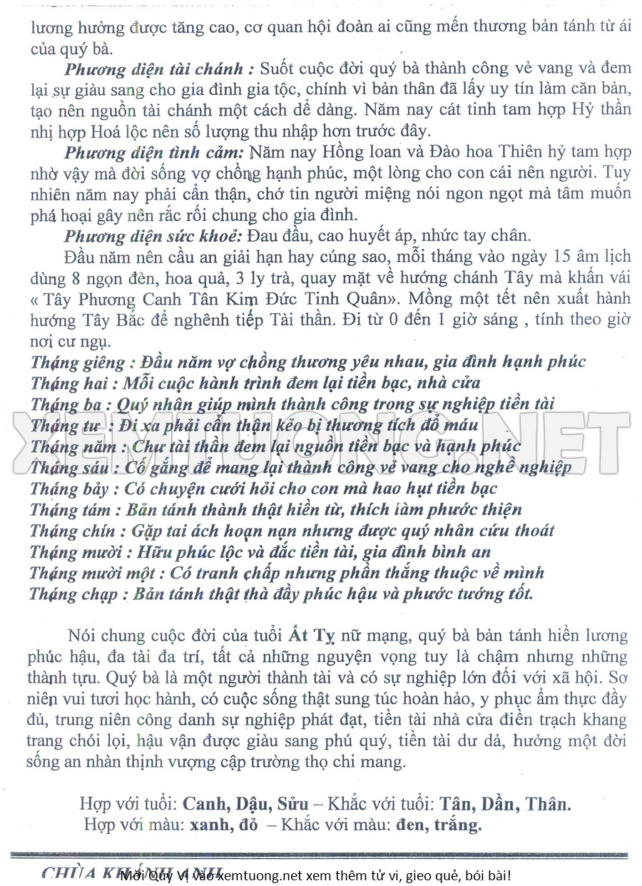 Tử Vi Năm Bính Ngọ 2026 mạng nữ ẤT TỴ