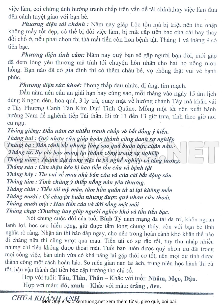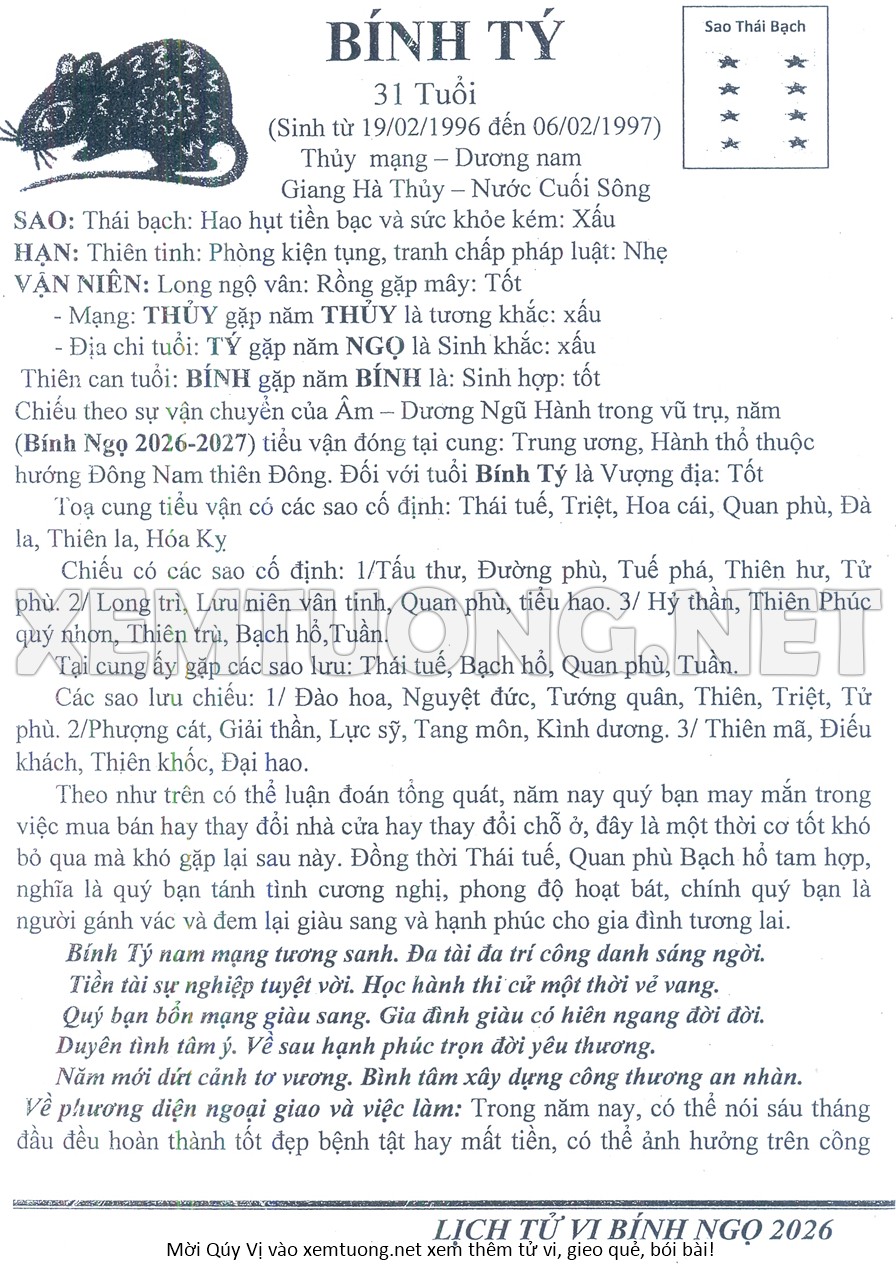 Tử Vi Năm Bính Ngọ 2026 mạng nam BÍNH TÝ