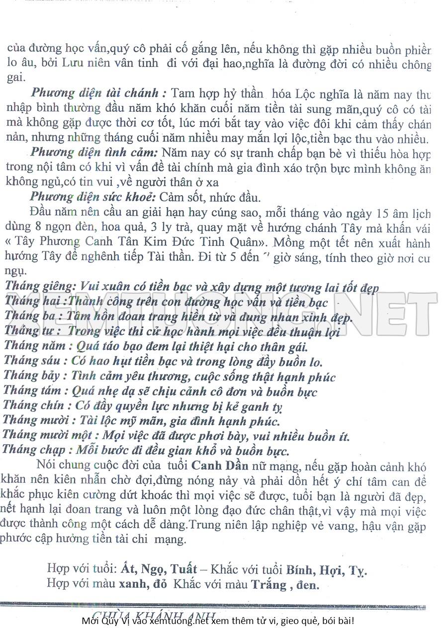 Tử Vi Năm Bính Ngọ 2026 mạng nữ CANH DẦN