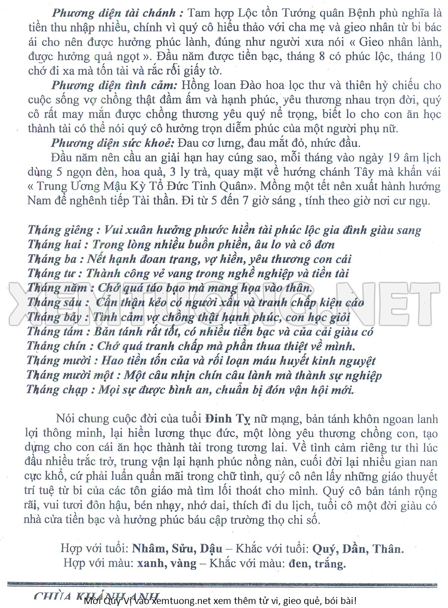 Tử Vi Năm Bính Ngọ 2026 mạng nữ Đinh TỴ