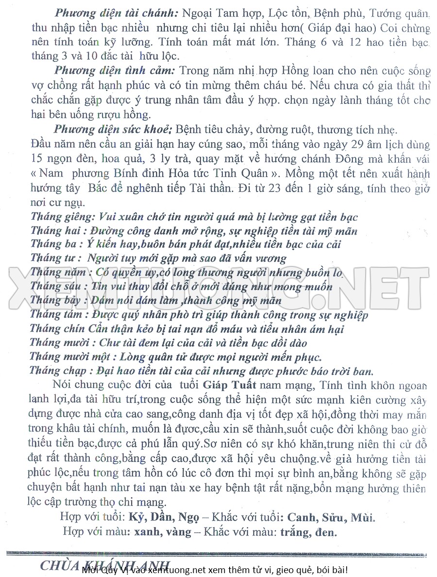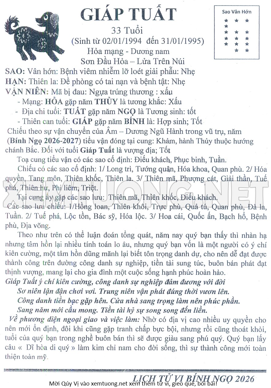 Tử Vi Năm Bính Ngọ 2026 mạng nam GIÁP TUẤT