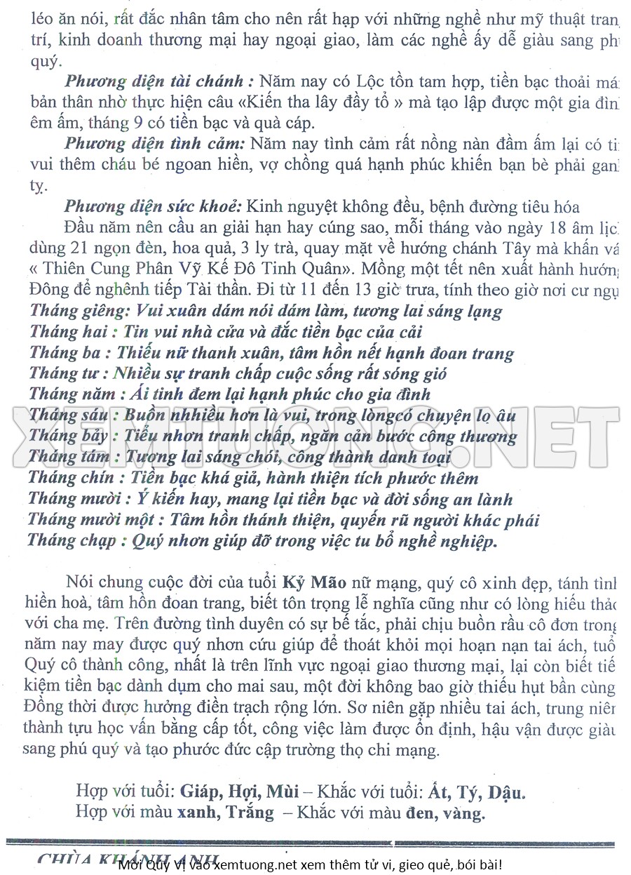 Tử Vi Năm Bính Ngọ 2026 mạng nữ KỶ MÃO