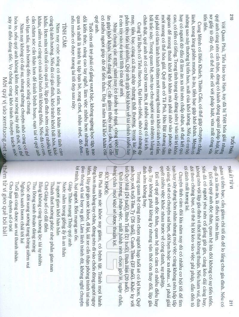 (Lưu ý: Thái Ất Tử Vi được chúng tôi scan từ sách, do đó mỗi tuổi sẽ có nhiều trang, quý vị xem xong hãy nhấn vào trang tiếp theo để xem hết phần tuổi muốn xem. Nếu quý vị xem bằng điện thoại thì hãy kéo qua lại để xem phần bị khuất.)