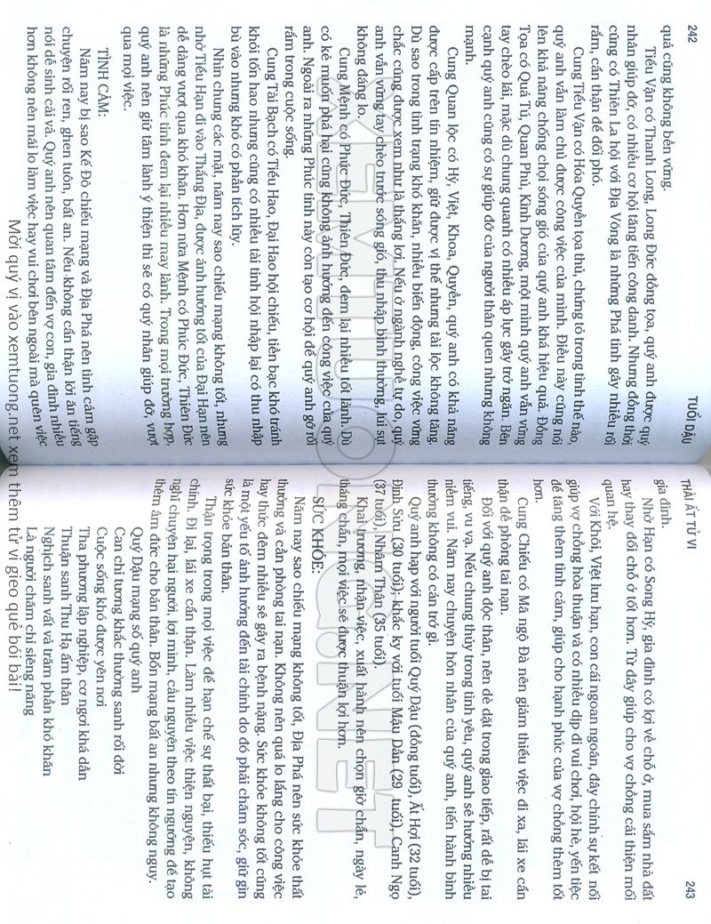 (Lưu ý: Thái Ất Tử Vi được chúng tôi scan từ sách, do đó mỗi tuổi sẽ có nhiều trang, quý vị xem xong hãy nhấn vào trang tiếp theo để xem hết phần tuổi muốn xem. Nếu quý vị xem bằng điện thoại thì hãy kéo qua lại để xem phần bị khuất.)