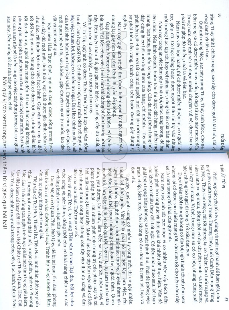 (Lưu ý: Thái Ất Tử Vi được chúng tôi scan từ sách, do đó mỗi tuổi sẽ có nhiều trang, quý vị xem xong hãy nhấn vào trang tiếp theo để xem hết phần tuổi muốn xem. Nếu quý vị xem bằng điện thoại thì hãy kéo qua lại để xem phần bị khuất.)