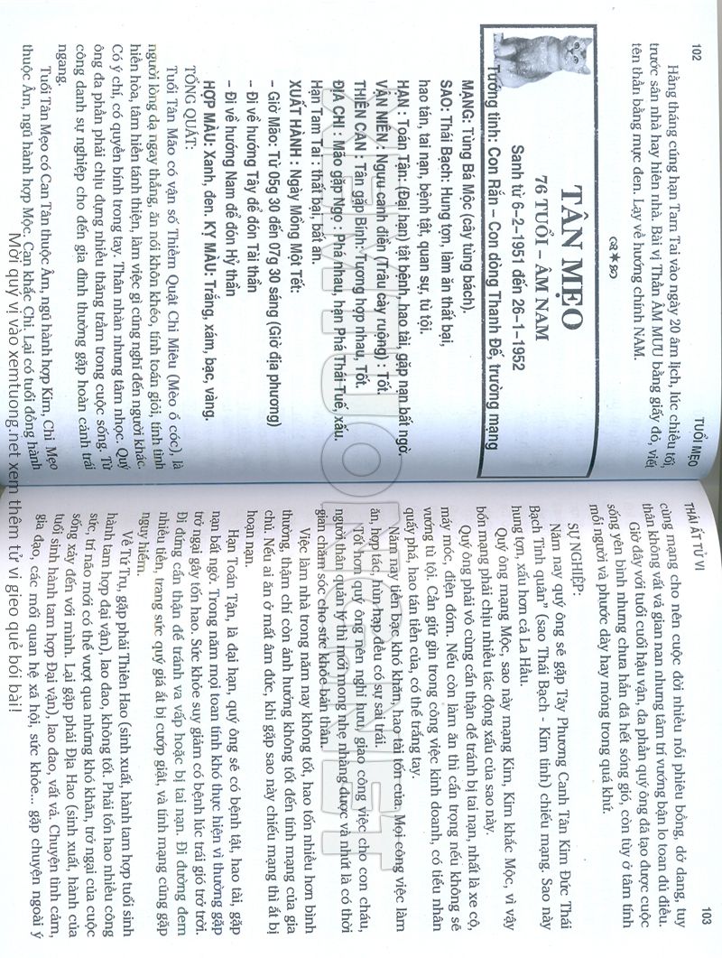 (Lưu ý: Thái Ất Tử Vi được chúng tôi scan từ sách, do đó mỗi tuổi sẽ có nhiều trang, quý vị xem xong hãy nhấn vào trang tiếp theo để xem hết phần tuổi muốn xem. Nếu quý vị xem bằng điện thoại thì hãy kéo qua lại để xem phần bị khuất.)
