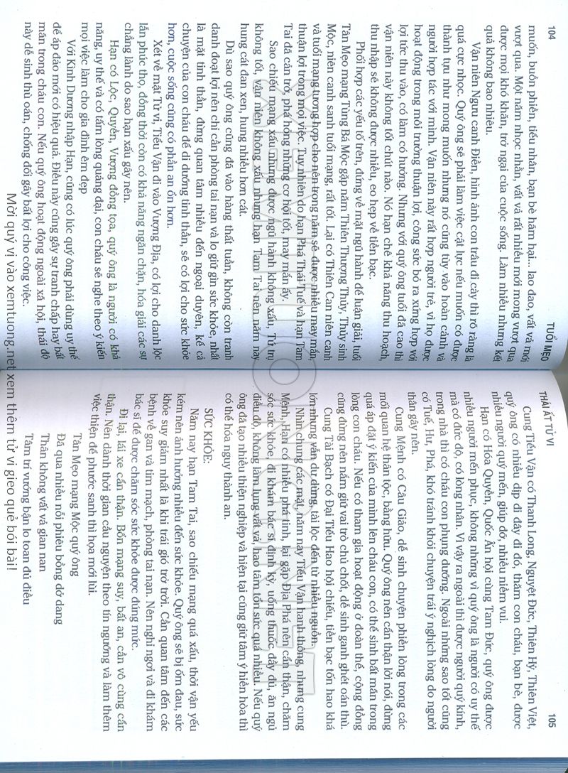 (Lưu ý: Thái Ất Tử Vi được chúng tôi scan từ sách, do đó mỗi tuổi sẽ có nhiều trang, quý vị xem xong hãy nhấn vào trang tiếp theo để xem hết phần tuổi muốn xem. Nếu quý vị xem bằng điện thoại thì hãy kéo qua lại để xem phần bị khuất.)
