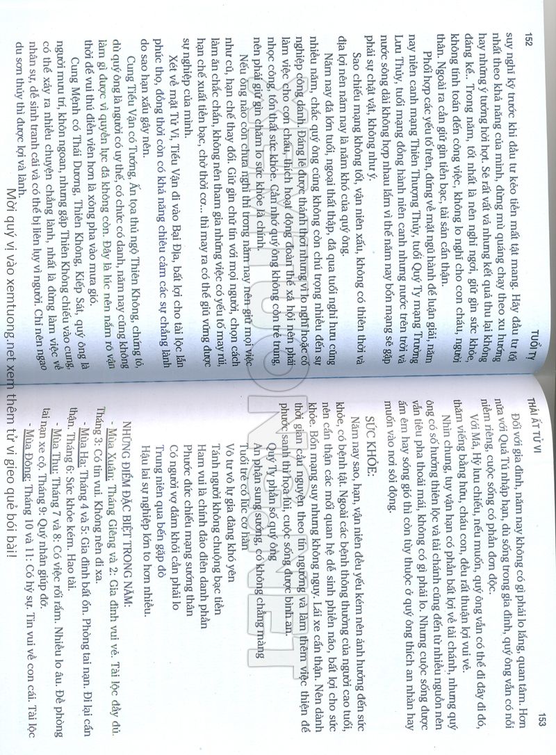 (Lưu ý: Thái Ất Tử Vi được chúng tôi scan từ sách, do đó mỗi tuổi sẽ có nhiều trang, quý vị xem xong hãy nhấn vào trang tiếp theo để xem hết phần tuổi muốn xem. Nếu quý vị xem bằng điện thoại thì hãy kéo qua lại để xem phần bị khuất.)