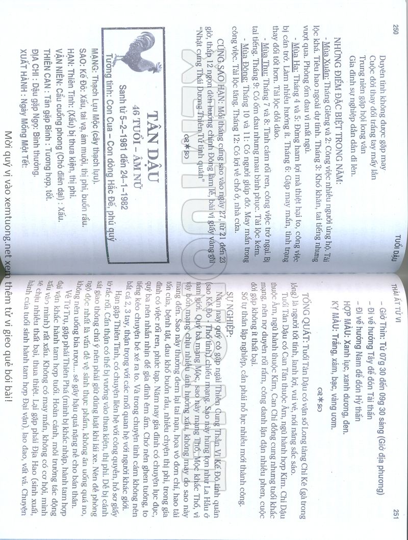 (Lưu ý: Thái Ất Tử Vi được chúng tôi scan từ sách, do đó mỗi tuổi sẽ có nhiều trang, quý vị xem xong hãy nhấn vào trang tiếp theo để xem hết phần tuổi muốn xem. Nếu quý vị xem bằng điện thoại thì hãy kéo qua lại để xem phần bị khuất.)