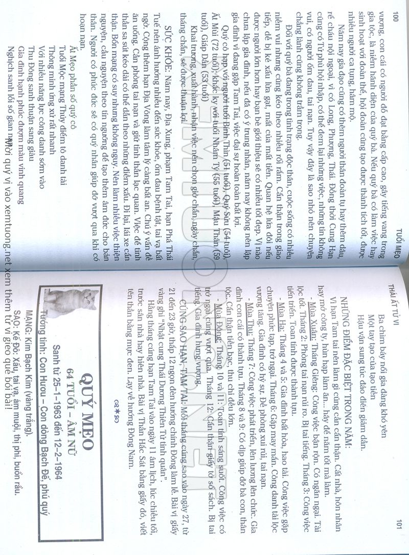 (Lưu ý: Thái Ất Tử Vi được chúng tôi scan từ sách, do đó mỗi tuổi sẽ có nhiều trang, quý vị xem xong hãy nhấn vào trang tiếp theo để xem hết phần tuổi muốn xem. Nếu quý vị xem bằng điện thoại thì hãy kéo qua lại để xem phần bị khuất.)